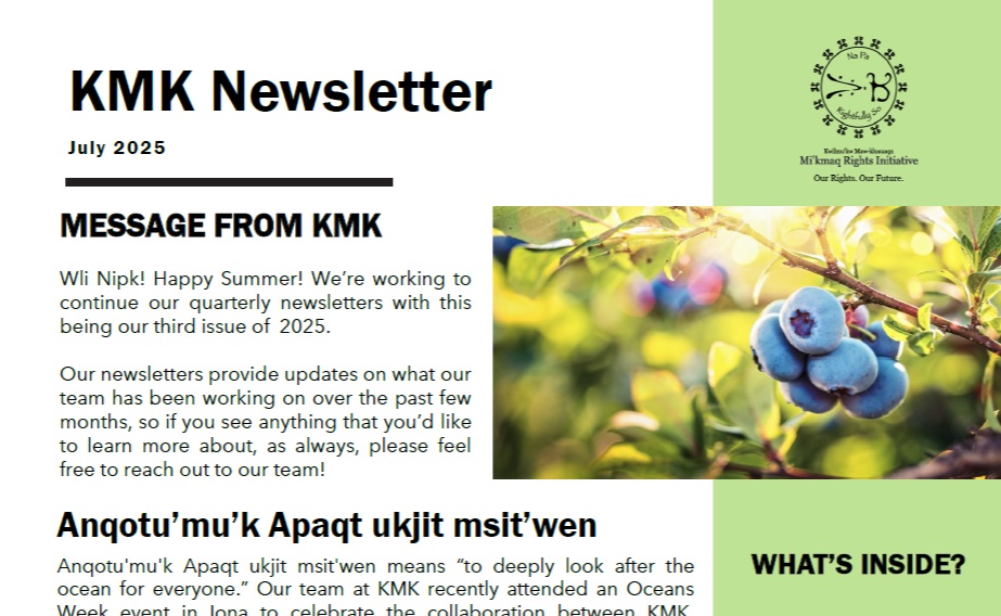 MESSAGE FROM KMK Wli Nipk! Happy Summer! We’re working to continue our quarterly newsletters with this being our third issue of 2025. Our newsletters provide updates on what our team has been working on over the past few months, so if you see anything that you’d like to learn more